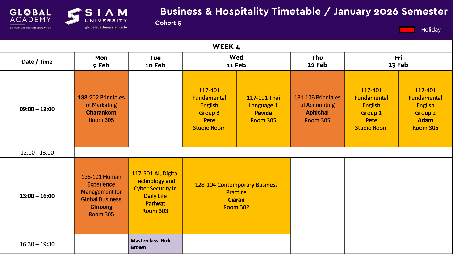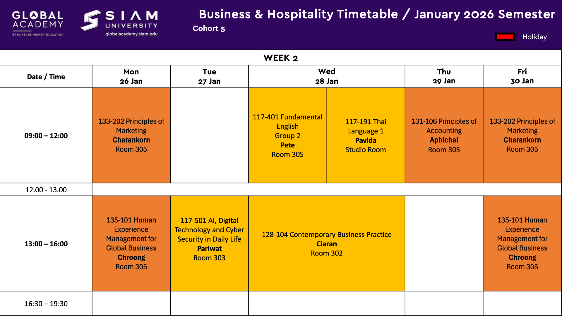 Cohort 5 Business - Student Calendar -ย Jan 2026